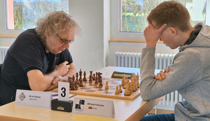 Es war schon sehenswert, wie Maxim Rodshtein am Spitzenbrett völlig cool blieb und seine leicht vorteilhafte Stellung mit guten Gewinnchancen bei der erstbesten Gelegenheit im Sinne der Mannschaft in eine völlig ausgeglichene Stellung abwickelte, in der für beide Seiten nichts mehr ging. Sein Gegner Marius Deuer versuchte noch etwas, aber es war aussichtslos: Die Hände wurden schließlich zum Remis gereicht, der knappst-mögliche 4,5:3,5-Sieg stand fest. Meister und Wiederaufstieg!